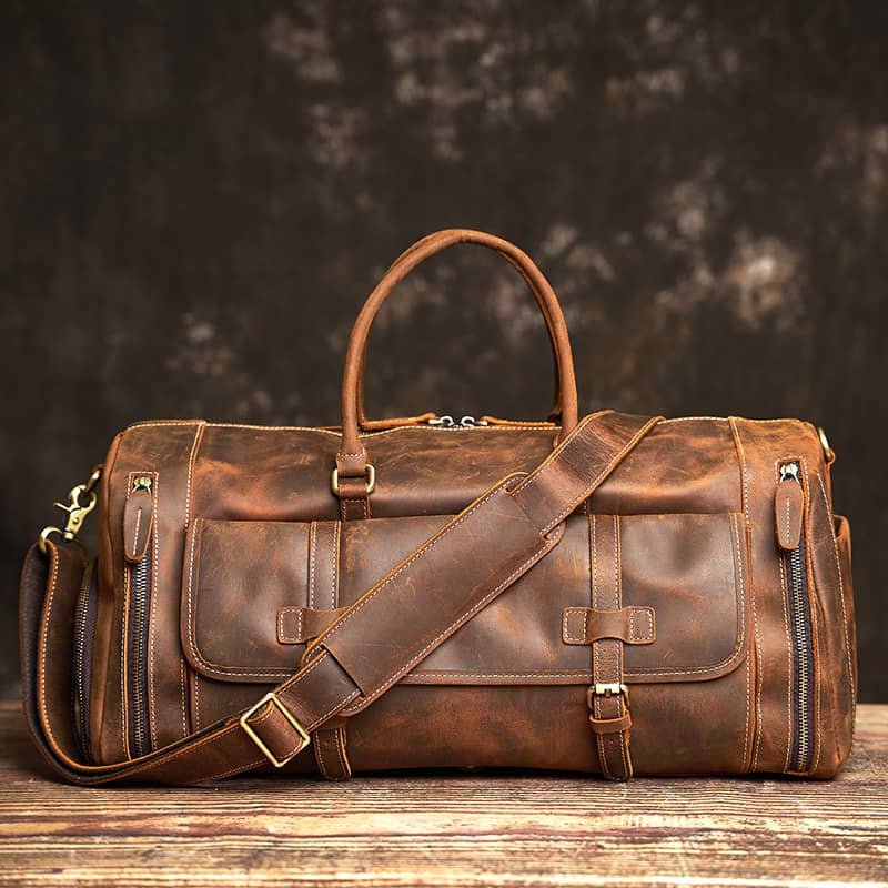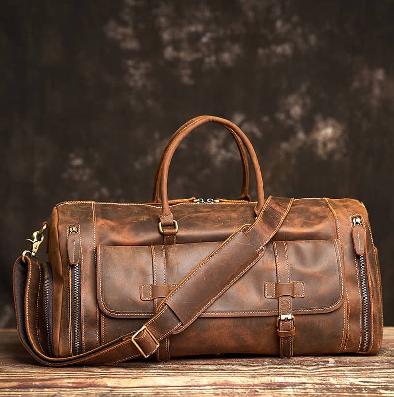 Leather Weekender Travel Bag With Shoe Compartment Supplier