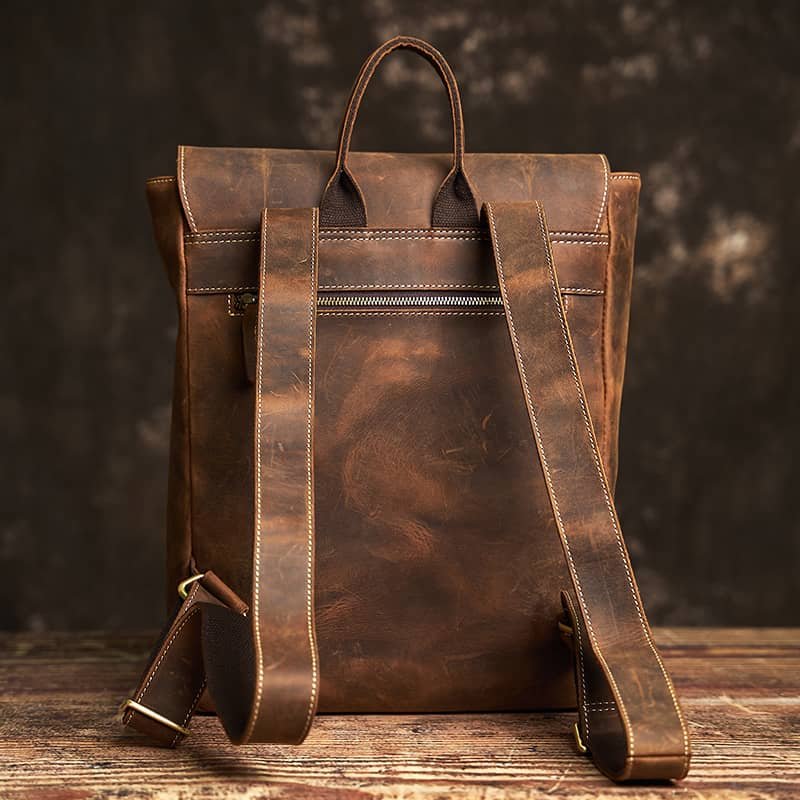Vintage Leather Backpack | With Flip-Top Cover