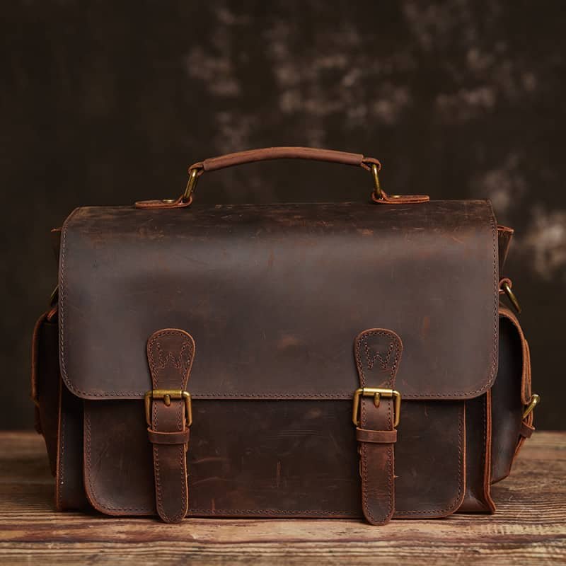Vintage Leather Camera Bag | Genuine Leather Crossbody Bag