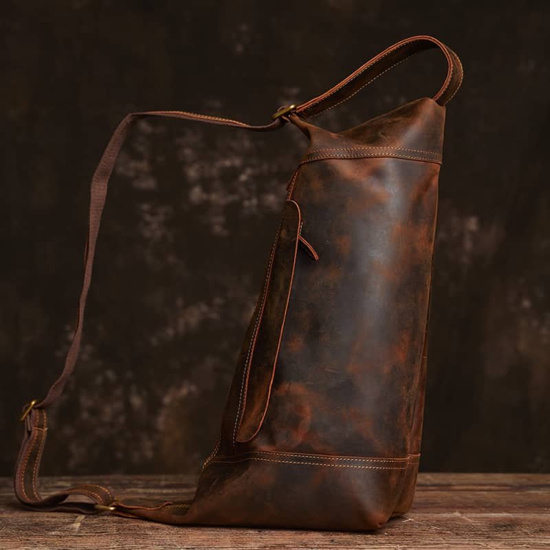 Vintage Leather Sling Bag l Men Large Shoulder Bag